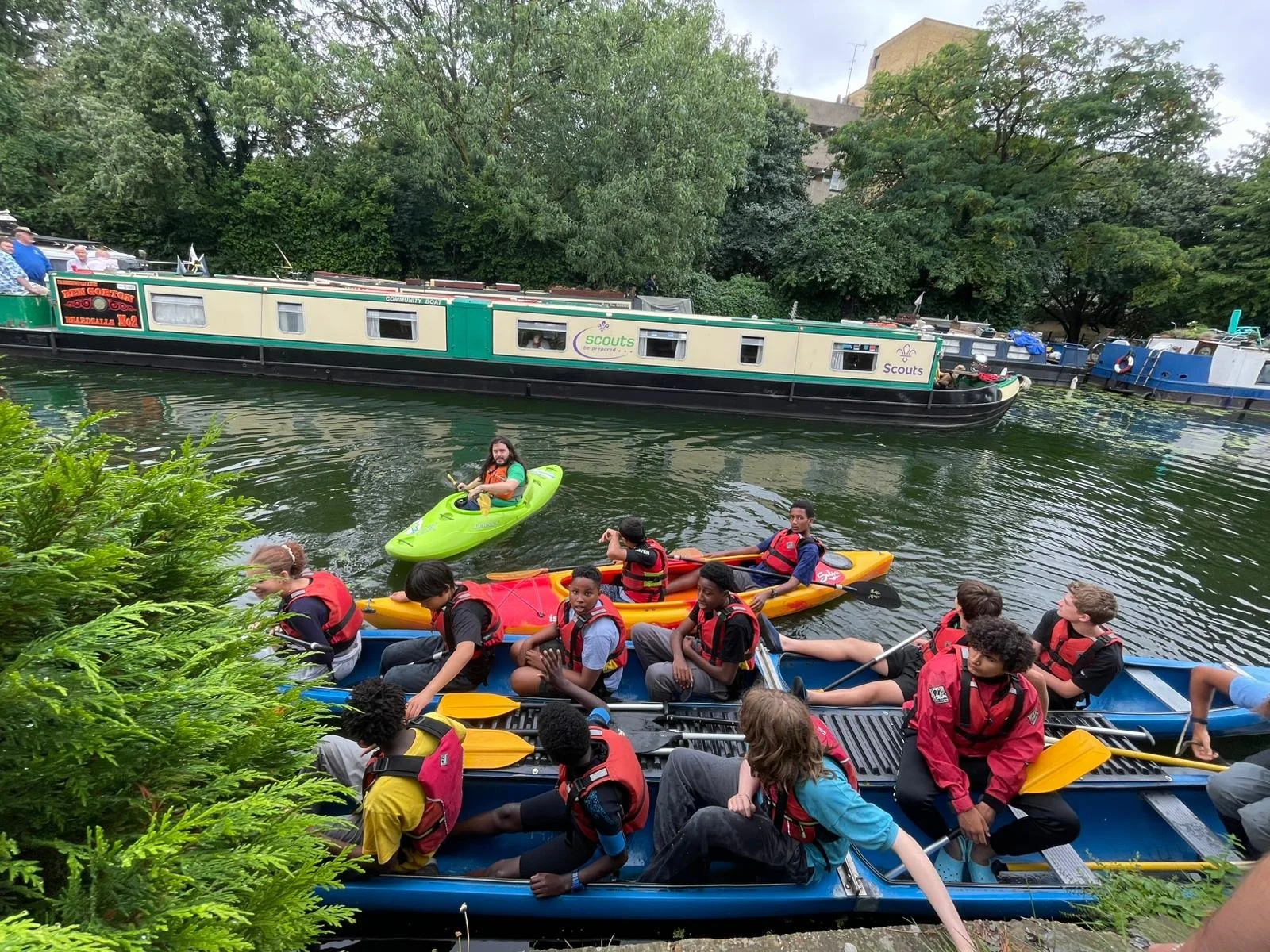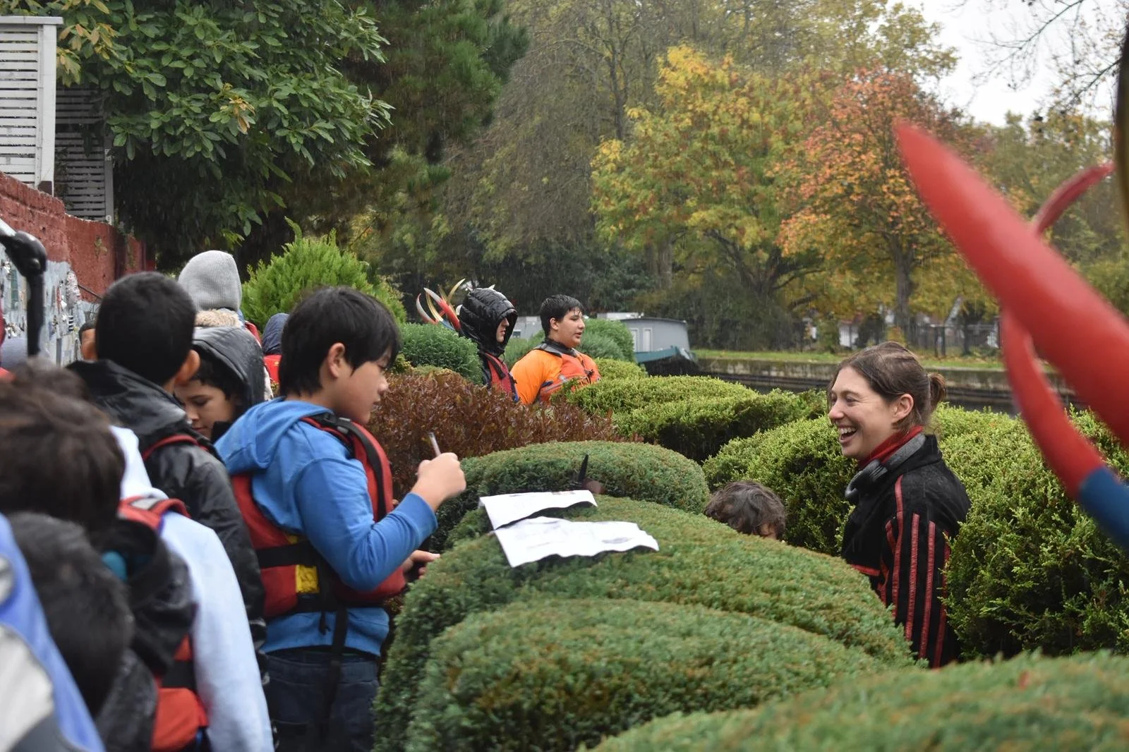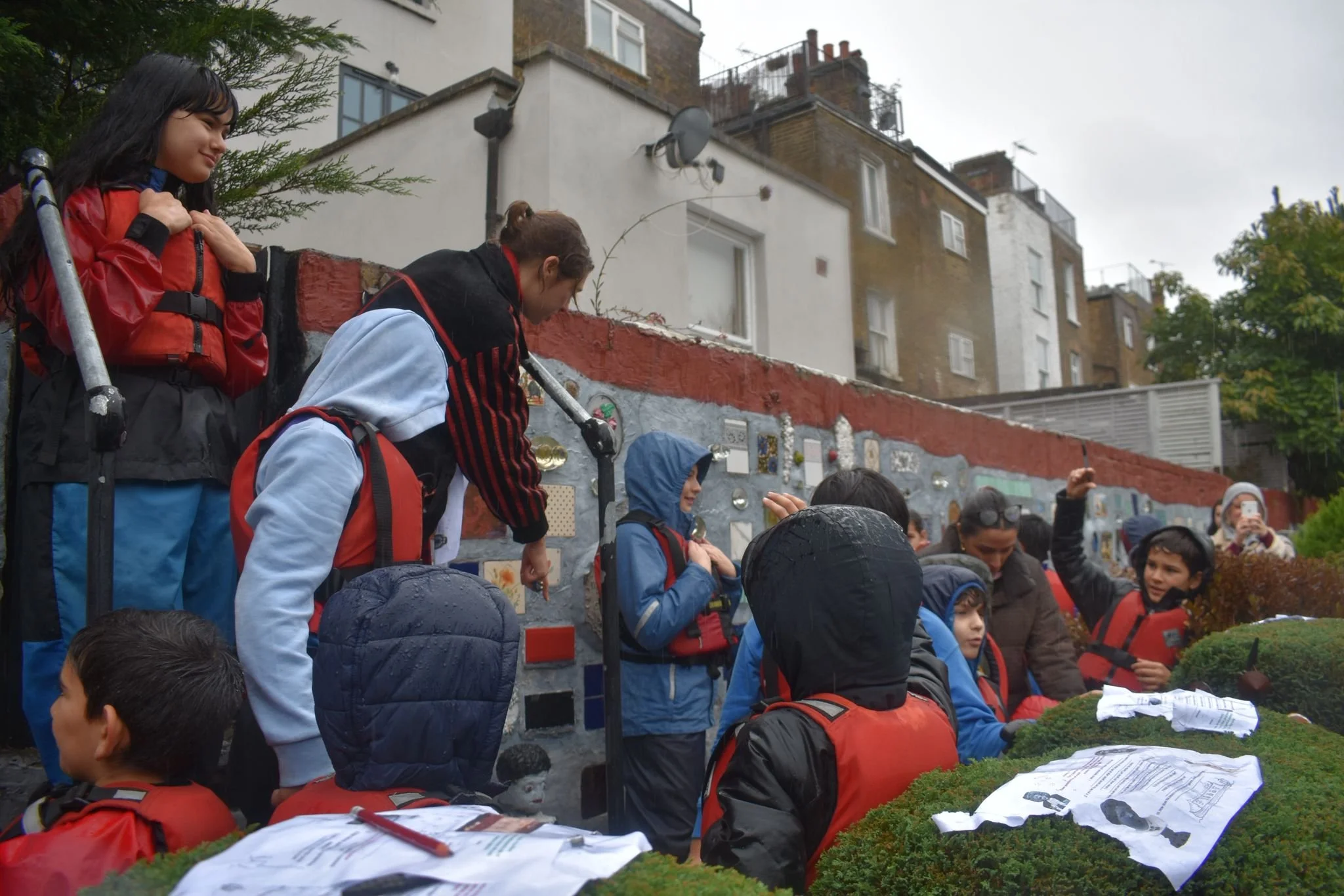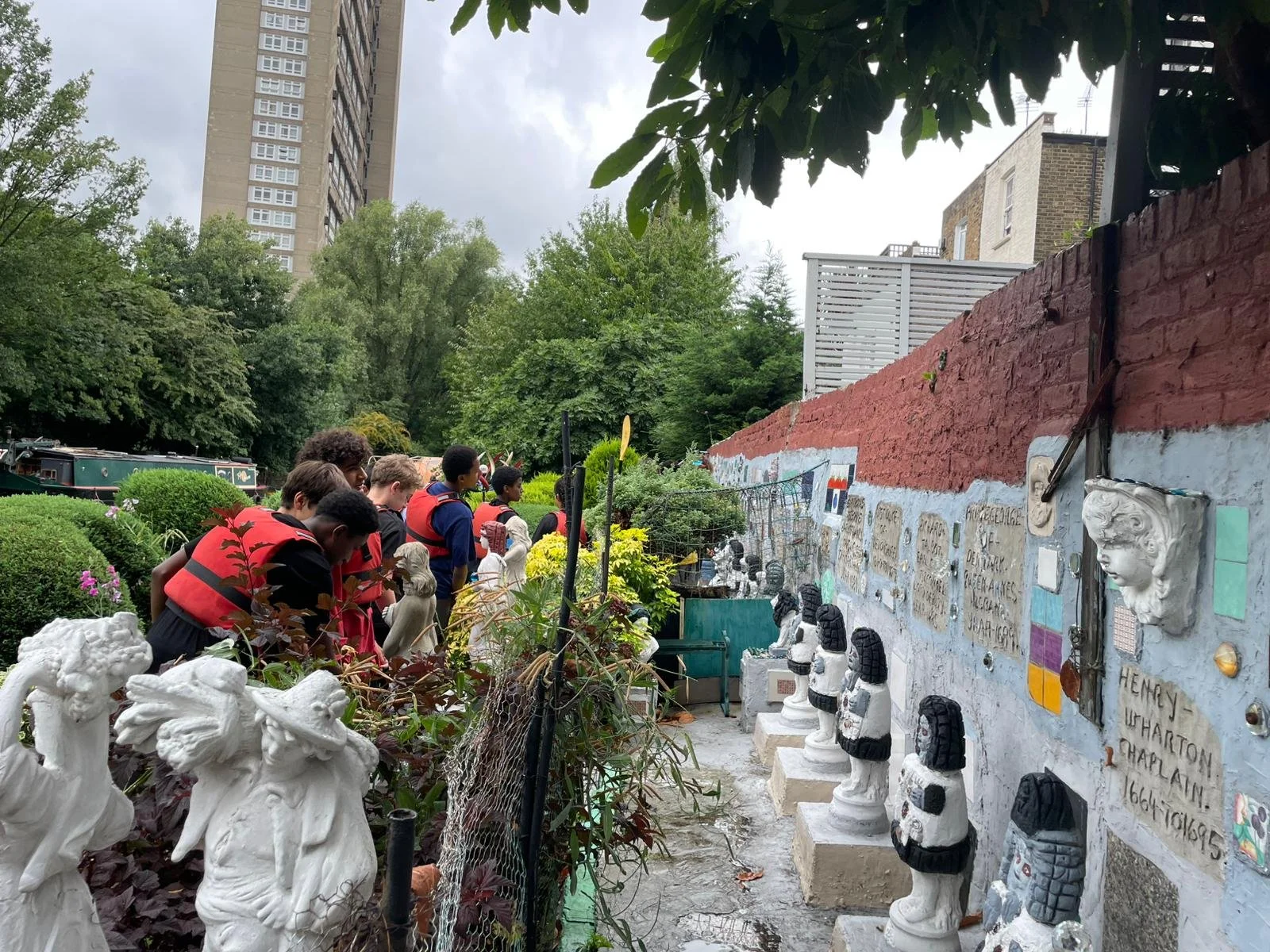 Although we have limited access to Gerry’s Pompeii apart from via the legendary Nick & Alison’s home who often allow special tours through, it is possible to arrive by boat! Recently we have been partnering with the London Sports Trust who enable children access to the water. Here are some images of some of our recent tours with children from the local area. Many of the children seemed to really connect with Gerry’s work. They couldn’t believe it had all been made by one man. If you are a school local to Gerry’s Pompeii and are interested in visiting please let us know and you can join our list ready for when we start making our boat trips more regular from spring next year.